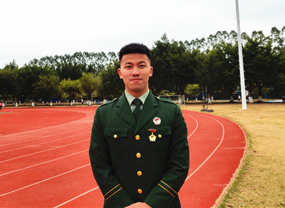 “小時(shí)候,我看過(guò)一部名為《烈火雄心》的電視劇,講的是消防員奮勇?lián)尵壬?,以濃煙考?yàn)斗志、以烈火洗煉人生的故事,那時(shí)我就對(duì)執(zhí)行任務(wù)類(lèi)型的職業(yè)非常向往。再加上男生打小對(duì)飛機(jī)、槍支武器都有一種特殊的感覺(jué),那時(shí)候就在想,有機(jī)會(huì)一定要去部隊(duì)歷練一番試試。”任伯聰告訴記者,大二那年,他終于夢(mèng)圓軍營(yíng),服役于武警河南總隊(duì)某中隊(duì)?!?個(gè)月的新兵連非常充實(shí),隊(duì)列訓(xùn)練、拉練、長(zhǎng)途行軍......讓我印象深刻的是在行軍過(guò)程中,不管去到什么地方,只要一身軍裝在身,當(dāng)?shù)氐男∨笥讯紩?huì)朝我敬禮,老百姓也特別友善,讓我感到非常自豪,這種軍民魚(yú)水情讓我感覺(jué)非常好。” 服役期間,因表現(xiàn)突出,任伯聰被評(píng)為“優(yōu)秀義務(wù)兵”,于2019年退出現(xiàn)役。離開(kāi)部隊(duì)后,他重返大學(xué)校園完成學(xué)業(yè),并加入了學(xué)校的國(guó)防教育服務(wù)中心,為學(xué)校的征兵宣傳工作奔走發(fā)聲。在校期間,任伯聰從未忘記自己曾經(jīng)是一名軍人?!拔覉?jiān)持每天長(zhǎng)跑10公里,練習(xí)單杠,也一直有按照之前部隊(duì)的訓(xùn)練標(biāo)準(zhǔn)來(lái)保持鍛煉?!?/p>  左一為任伯聰。