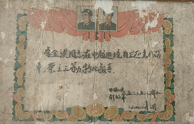 僅用半小時,尖刀班就消滅了4名敵人、俘虜1名,繳獲半自動步槍2支,并且全班無一人員傷亡,打下一場漂亮的伏擊戰(zhàn)??克缮?、東溪、高平、茶靈、廣淵、下瑯……對越自衛(wèi)反擊戰(zhàn)期間,李金洪保家衛(wèi)國浴血奮戰(zhàn),出色地完成了上級交給的護衛(wèi)和戰(zhàn)斗任務(wù),榮立個人三等功1次。