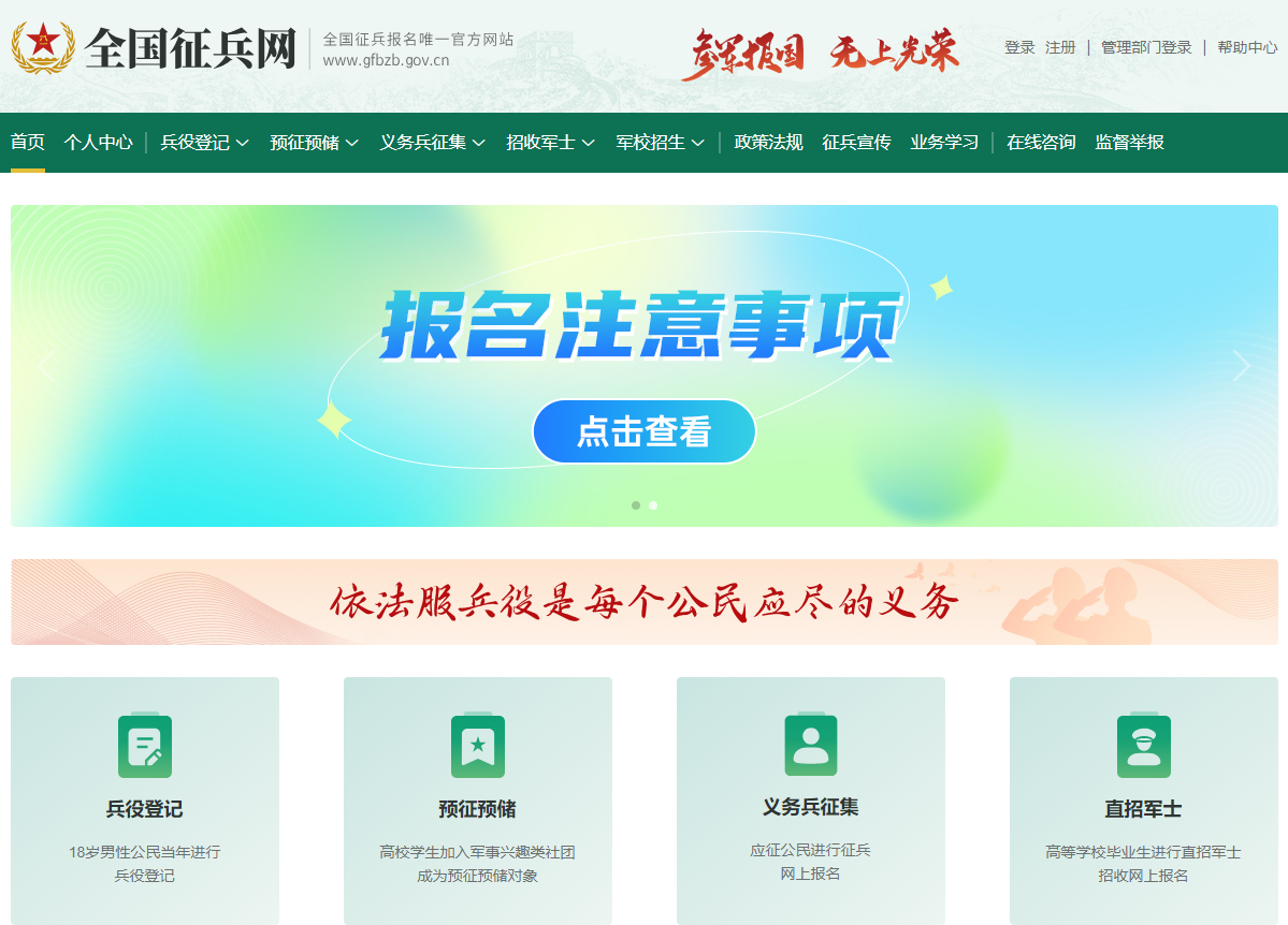 《中華人民共和國(guó)兵役法》明確國(guó)家實(shí)行兵役登記制度,每名男性青年在年滿18周歲時(shí)都要履行兵役登記義務(wù)。當(dāng)年12月31日以前年滿17周歲未滿18周歲的男性公民本人自愿的,也可進(jìn)行初次兵役登記。