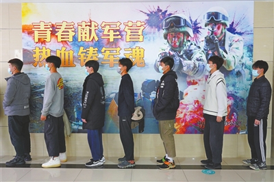 在體檢集合處,“參軍報(bào)國(guó),無上光榮”等字眼隨處可見。