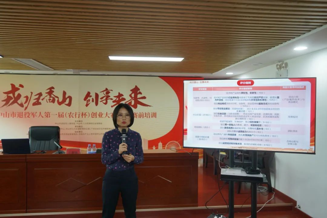 會上,大賽組委會為大家詳細介紹了中山市退役軍人第一屆(農行杯)創(chuàng)業(yè)大賽的總體內容,包括初賽賽制、決賽賽制、賽事流程、大賽獎項及六大扶持政策等。