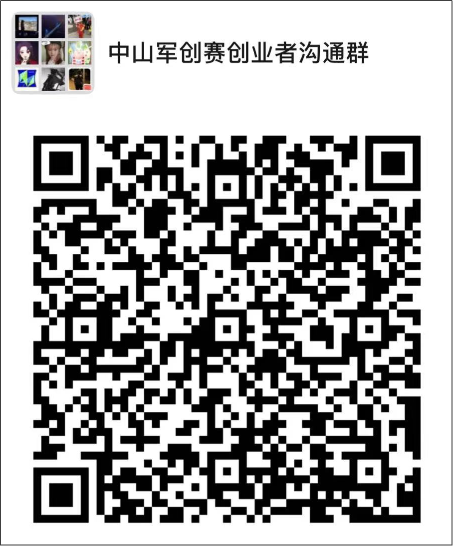 (2)未參加賽前培訓會的項目選手,如需導師培訓課件,可掃描下方“中山軍創(chuàng)賽創(chuàng)業(yè)者溝通群”二維碼加入,咨詢大賽執(zhí)委會工作人員領取課件。