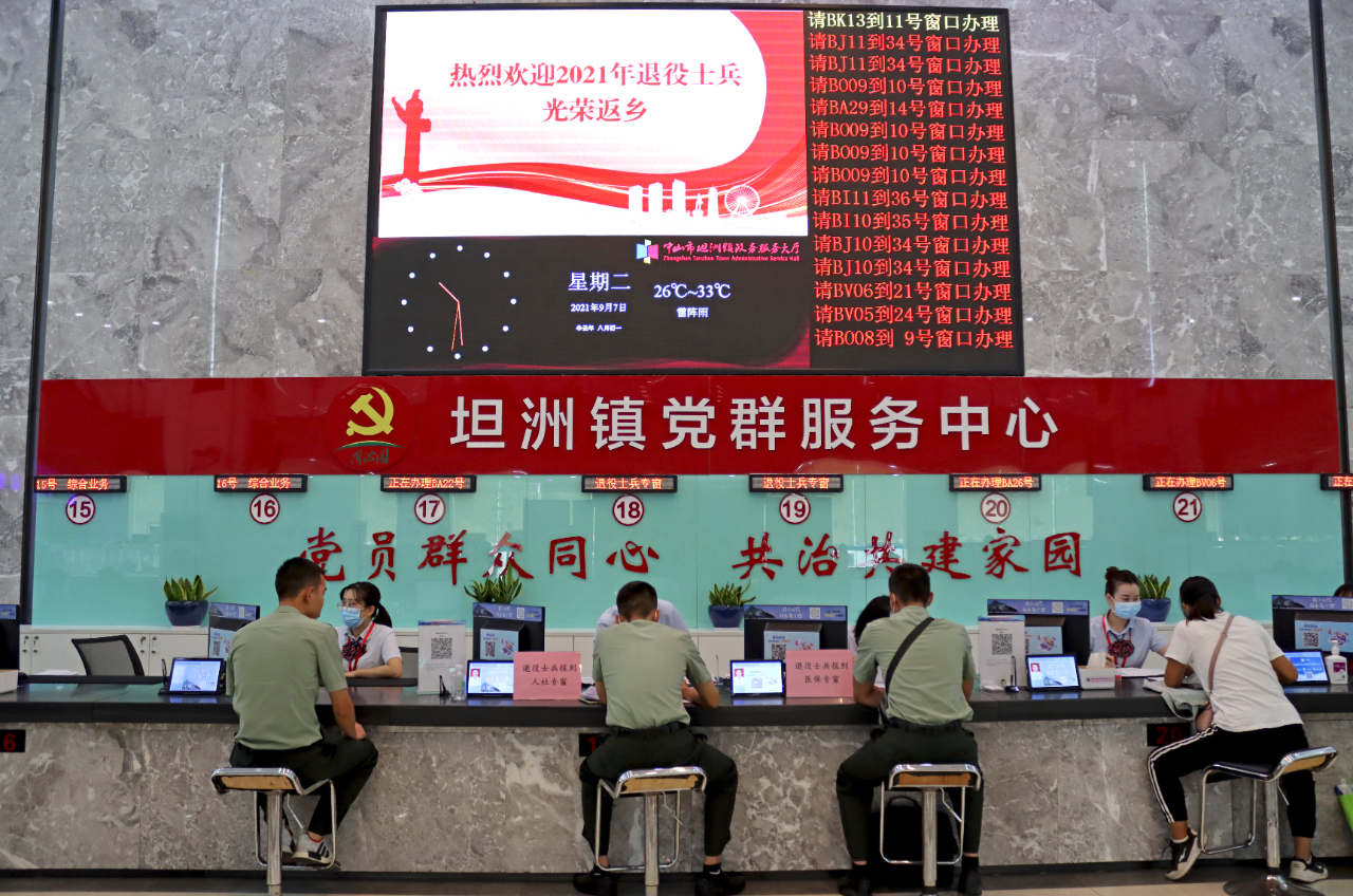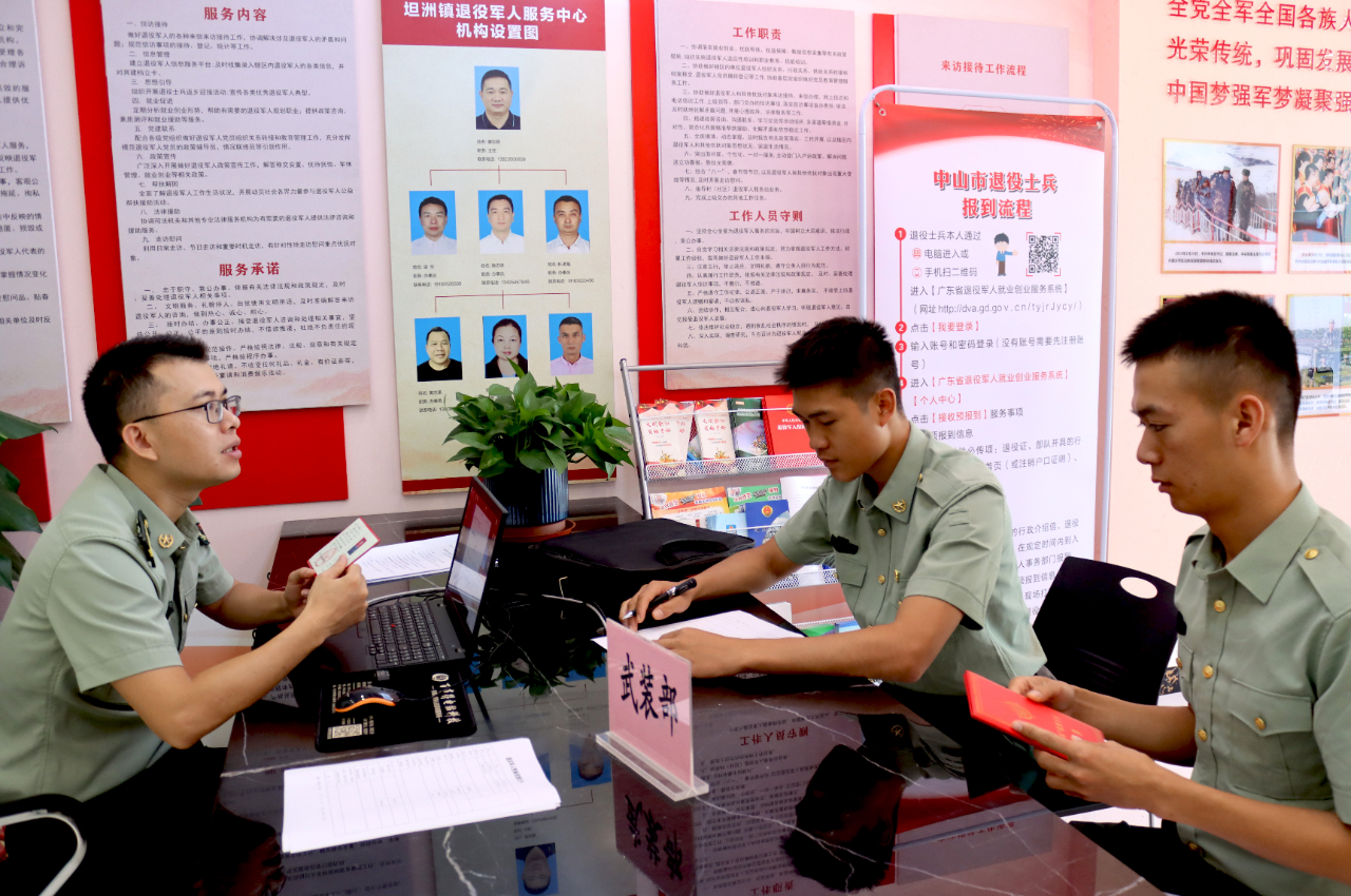 進(jìn)入9月份,坦洲鎮(zhèn)陸續(xù)迎來(lái)返鄉(xiāng)報(bào)到的2021年秋季退役士兵。為進(jìn)一步提升服務(wù)水平,切實(shí)讓返鄉(xiāng)退役士兵感受到家鄉(xiāng)的溫暖和社會(huì)的尊崇,坦洲鎮(zhèn)公共服務(wù)辦公室、退役軍人服務(wù)中心聯(lián)合鎮(zhèn)人民武裝部、公安分局、人社分局等部門(mén),提前謀劃、精心組織,想退役士兵之所想,急退役士兵之所急,竭誠(chéng)為戰(zhàn)友們提供溫馨便捷的“一站式”服務(wù)。