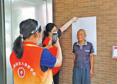 ▲西區(qū)街道退役軍人服務中心工作人員上門為老兵辦理優(yōu)待證。