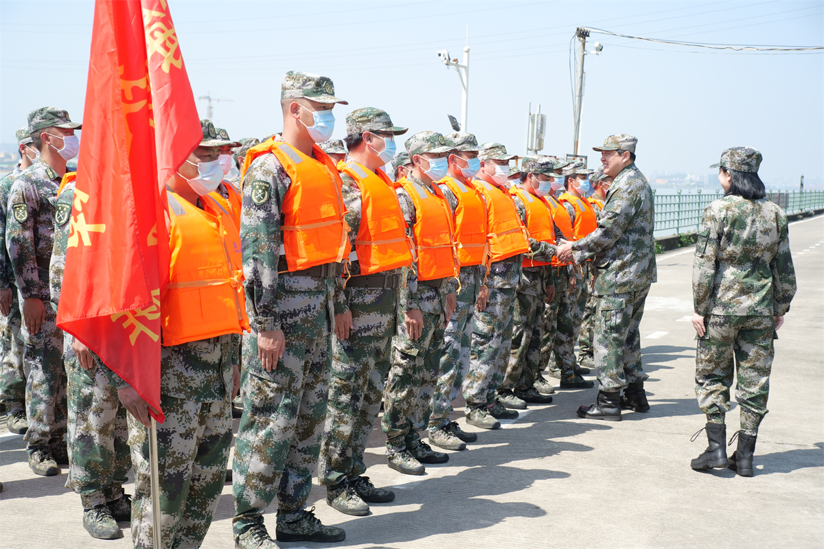 往年清明節(jié),南區(qū)街道三仙娘山是附近群眾掃墓、踏青的集聚點(diǎn)。為落實(shí)疫情防控,推進(jìn)移風(fēng)易俗,參戰(zhàn)老兵鮑源波等10多名退役軍人志愿者,清明假期在登山進(jìn)口駐點(diǎn)設(shè)卡,向群眾宣傳居家追思、安全祭掃,自覺遵守防疫規(guī)定和用火防火規(guī)定。劉燦瑩勉勵(lì)志愿者要做到退伍不褪色、退伍不落伍、轉(zhuǎn)業(yè)不轉(zhuǎn)志,在疫情防控一線詮釋“守護(hù)”的意義。 民眾街道河岸線長、水域廣,與港澳水運(yùn)往來密切,針對(duì)當(dāng)前嚴(yán)峻的岸線疫情防控形勢(shì),相關(guān)部門以最大的決心、最有力的舉措,筑牢水上防疫安全屏障。劉燦瑩、李健一行趁民眾街道100多名民兵、公安民警交班集結(jié)之際,前往慰問。劉燦瑩要求大家進(jìn)一步加強(qiáng)岸線巡查,加強(qiáng)“兩反”力度,切實(shí)從嚴(yán)做好防控工作。 劉燦瑩指出,要始終堅(jiān)持“人民至上、生命至上”,把疫情防控作為當(dāng)前頭等大事來抓,認(rèn)真貫徹落實(shí)疫情防控的有關(guān)部署要求,堅(jiān)決打好打贏疫情防控阻擊戰(zhàn)。 |