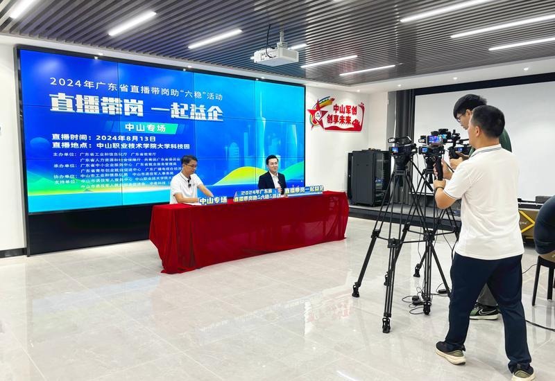 8月13日上午,由廣東省工業(yè)和信息化廳、廣東省教育廳、廣東省人力資源和社會保障廳、共青團廣東省委員會共同主辦,廣東省中小企業(yè)服務中心、廣東省就業(yè)服務管理局、廣東省青年創(chuàng)業(yè)就業(yè)促進中心、廣東經濟科教頻道共同承辦,中山市工業(yè)和信息化局、中山市退役軍人事務局聯(lián)合協(xié)辦的“2024年廣東省直播帶崗助‘六穩(wěn)’活動——‘直播帶崗 一起益企’(中山專場)”,在中山職業(yè)技術學院大學科技園內的軍創(chuàng)企業(yè)中希科技(廣東)有限公司舉辦。