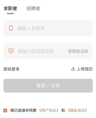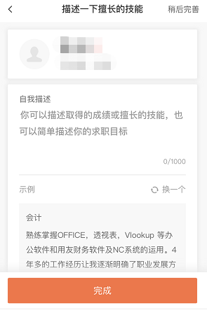 2、注冊賬號 未注冊登陸的求職者將自動(dòng)跳轉(zhuǎn)到注冊頁面,完善相關(guān)信息后點(diǎn)擊【完成】按鈕完成注冊流程。