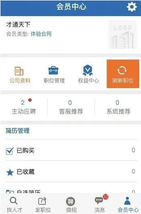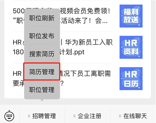 ▲發(fā)布職位流程 3、管理招聘 關(guān)注公眾號【國際人才網(wǎng)企業(yè)版】,在【招聘管理】菜單欄找到【簡歷管理】,即可查看主動(dòng)應(yīng)聘的求職者,并可發(fā)起溝通或邀約面試。