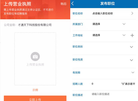 ▲企業(yè)注冊流程 2、發(fā)布職位 完善注冊信息后,即可進(jìn)入到【企業(yè)會(huì)員中心管理后臺】,發(fā)布職位前【上傳營業(yè)執(zhí)照】,【通過審核后】即可發(fā)布職位,企業(yè)發(fā)布的符合條件的崗位將同步更新至【2022年度珠中江區(qū)域退役軍人及隨軍家屬網(wǎng)絡(luò)招聘會(huì)】