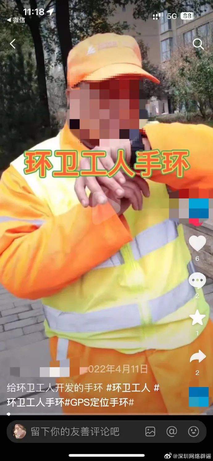近日,網(wǎng)傳“深圳環(huán)衛(wèi)工人佩戴的定位手環(huán)停留15秒后將自動報警”,記者從深圳市城市管理和綜合執(zhí)法局了解到,該情況不屬實(shí)。傳言中圖片是2022年4月11日上傳的定位手環(huán)功能介紹視頻的視頻封面,于近日被添加了“深圳定位停留15秒自動報警”文字并上傳至新媒體平臺傳播,對深圳環(huán)衛(wèi)行業(yè)造成不良社會影響。