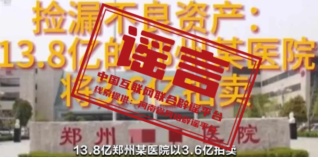謠 言  鄭州某醫(yī)院將以3.6億元被拍賣?