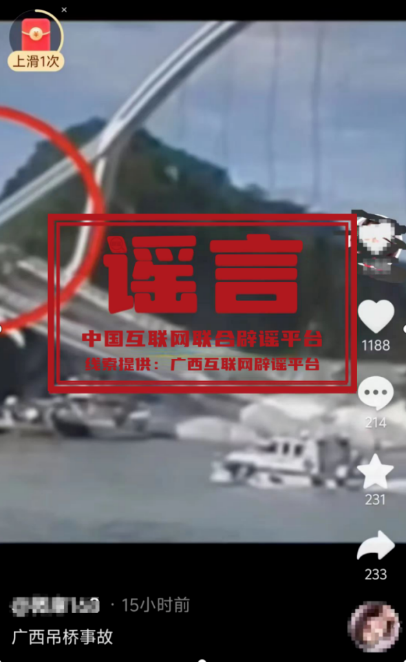 謠 言  廣西發(fā)生吊橋垮塌事故?