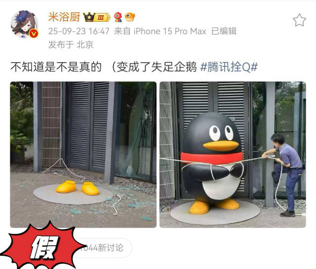 比如騰訊公司門口的企鵝雕塑,公司為了防御臺風(fēng),將企鵝用繩拴了起來。而有網(wǎng)民傳播的圖片顯示企鵝只剩雙腳,上身被風(fēng)吹走。騰訊QQ回應(yīng):“鵝拴著呢,穩(wěn)穩(wěn)的。”