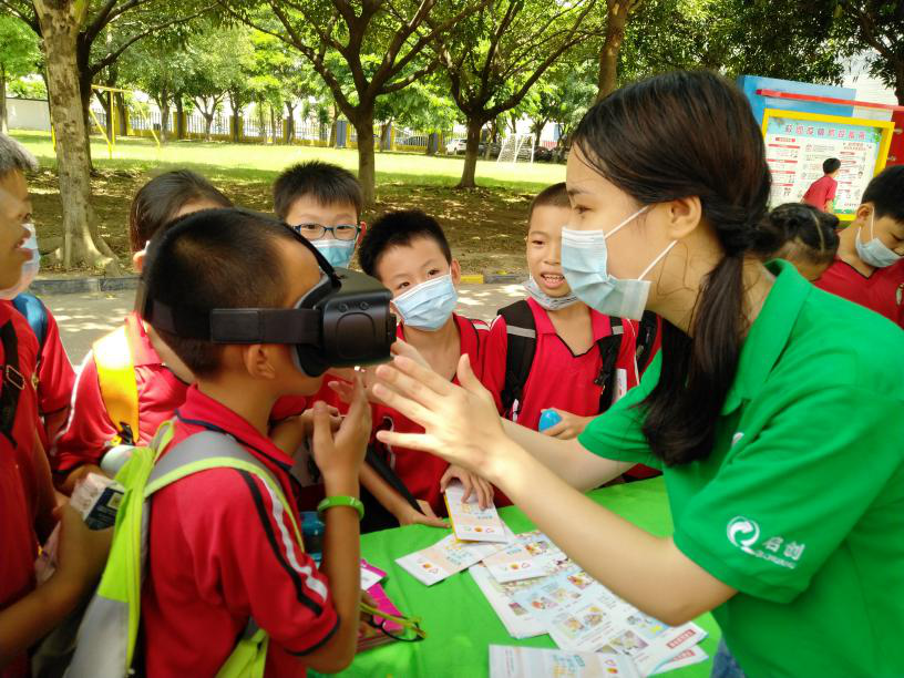 活動現(xiàn)場,擺設有仿真毒品模型、VR眼鏡的攤位吸引了眾多學生。社工熱情地向?qū)W生講解了毒品的危害和防范新型毒品的有關知識,呼吁同學們要遠離毒品,珍愛生命。