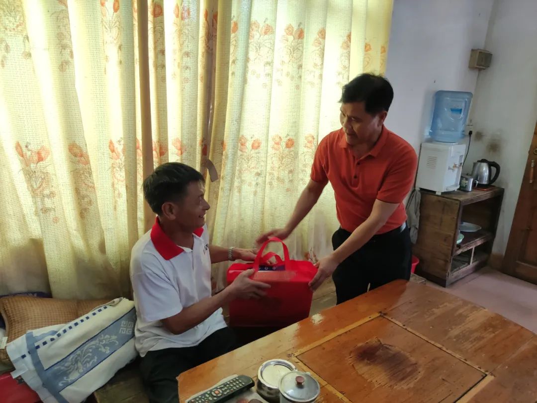 座談會(huì)后,副鎮(zhèn)長郭永波帶隊(duì),鎮(zhèn)武裝部、鎮(zhèn)退伍軍人服務(wù)中心、義倉村組成慰問隊(duì),走訪慰問民眾鎮(zhèn)的退役軍人陳元添和梁錫洪,給他們送去黨和政府的關(guān)懷,提前向他們致以節(jié)日祝福,感謝他們及其家屬對(duì)祖國、對(duì)人民、對(duì)部隊(duì)所作出的貢獻(xiàn)。