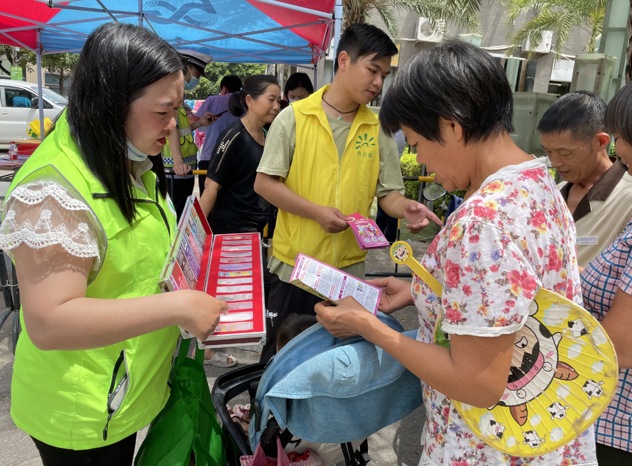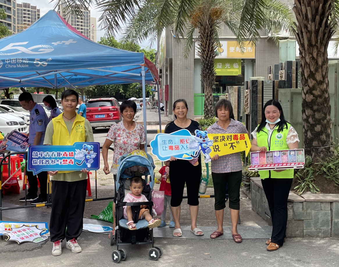 為進(jìn)一步提高阜沙鎮(zhèn)人民群眾抵制毒品的意識和能力,積極調(diào)動廣大群眾參與禁毒的積極性。2021年6月12日下午,阜沙鎮(zhèn)禁毒辦聯(lián)合禁毒社工深入到羅松村阜豐豪庭小區(qū)一帶開展以“健康人生,綠色無毒”為主題的禁毒宣傳活動。